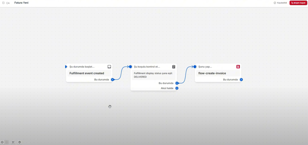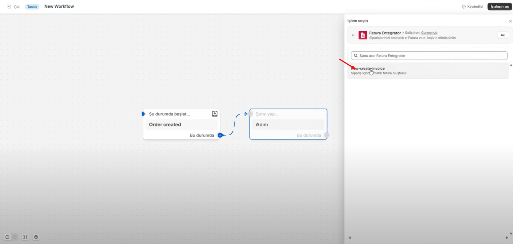 Son olarak “Flow-create-invoice” seçeneğini belirleyerek fatura kesme kuralını ekliyoruz.