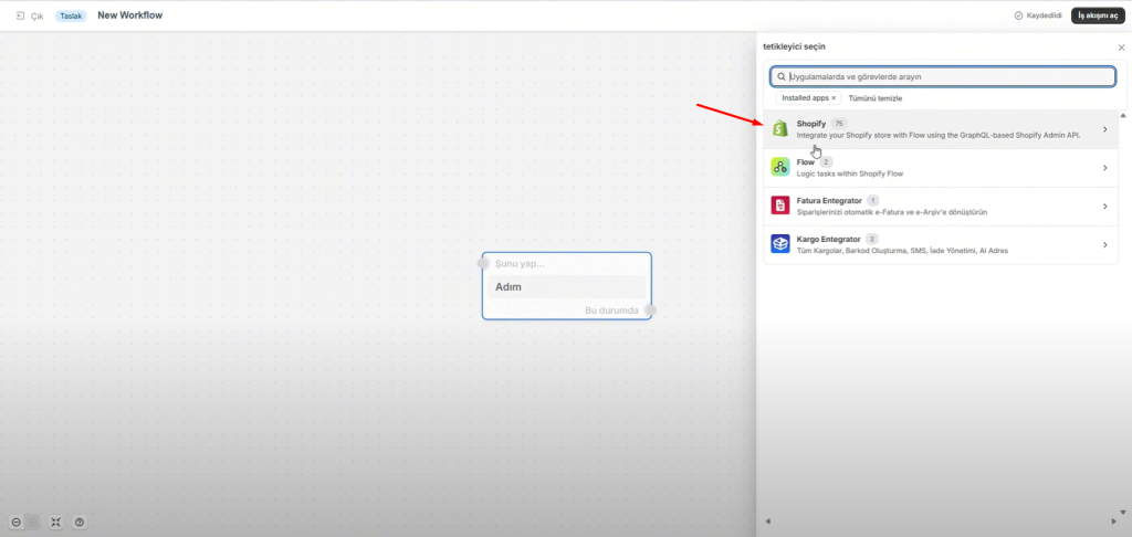 Daha sonra Shopify tetikleyicisini seçiyoruz.